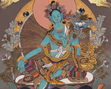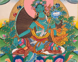 Original Hand-Painted Green Tara Thangka | Tibetan Female Bodhisattva Painting