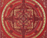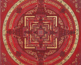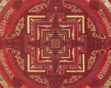 This Kalachakra is depicted with intricate gold designs on a red background, symbolizing spiritual wealth and vitality. Its vibrant colors and detailed patterns serve as a focal point for meditation and visualization, aiding practitioners in deepening their understanding of Buddhist principles and fostering inner peace.