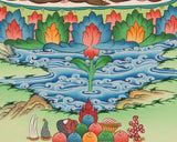 Guru Rinpoche, or precious teacher, is commonly known as Padmasambhava - the 'lotus born'. Known as the second Buddha who propagated the Buddhadharma throughout Tibet, he is considered the complete embodiment of all Buddhas of the three kayas. To benefit numerous beings and spread the Buddhadharma during the age of decline, Guru Rinpoche spread many hidden treasure teachings throughout Tibet and within the minds of his students. These were later discovered as termas.