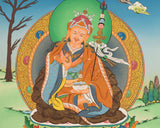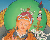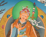 Guru Rinpoche Thangka Painting With Brocade | Tibetan Buddhist Wall Hanging Art