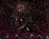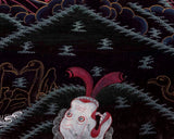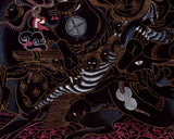 Palden Lhamo is one of the main Dharma Protectors in Tibetan Buddhism. Also known as Shri Devi in Sanskrit, she is a direct emanation of the Goddess Saraswati, manifesting in a wrathful form. Above her is Lama Tsongkhapa, the renowned 14th-century Tibetan saint, and scholar. To Lama Tsongkhapa's right is his heart disciple, Gyaltsab Rinpoche, and to his left is his other heart disciple, Khedrub Rinpoche.