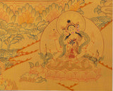 This Full 24K thangka serves not only as a stunning visual centerpiece but also as a powerful tool for meditation and spiritual practice. The thangka's luxurious appearance, coupled with its profound spiritual symbolism, makes it a treasured addition to any meditation space or home altar, infusing the environment with a sense of peace, protection, and sacred beauty.