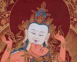 Red And Gold Vajrasattva Yab Yum Thangka | Wall Decor Painting
