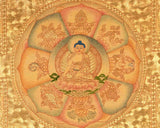 Shakyamuni Buddha Mandala Surrounded By Auspicious Symbols | Tibetan Art Painting