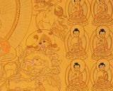 This is a very high-quality Tibetan Thangka of Buddha, painting made with natural stone color and pure gold.