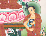 The Thangka serves as a focal point for meditation and devotion, inviting practitioners to connect with the wisdom and compassion embodied by Shakyamuni Buddha. Placed in a meditation room or shrine room, it serves as a reminder of the Buddha's teachings and the path towards enlightenment. Additionally, the Thangka can be used in Buddhist ceremonies or rituals to invoke blessings and inspiration. It also makes a meaningful decoration in any living space, serving as a symbol of peace, wisdom, and spiritual guidance.