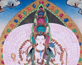 Small 1000 Armed Lokeshvara With Brocade | Wall Hanging Yoga Meditation Canvas Art