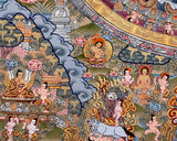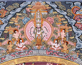 The intriguing and intricate Tara Mandala Thangka is a work of art with great spiritual importance in Tibetan Buddhism. This holy thangka shows Tara, the goddess of wisdom and compassion, who has attained enlightenment. The thangka is painstakingly hand-painted with vivid pigments and priceless gold leaf embellishments on silk or cotton canvas. Tara is depicted in a variety of hues and forms, and she is encircled by a colorful celestial landscape that is filled with fantastical creatures, lucky signs, and complex flower designs. With her serene demeanor and graceful movements, the artist beautifully conveys the beauty and calm of Tara.