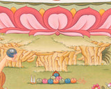 Medicine Buddha is highly practiced among the Himalayan Tibetan Buddhist community. This Buddha thangka is done in the traditional Menri style, a major painting style from Lhasa, Central Tibet.