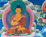Thangka Painting of Shakyamuni , Dipankara and Maitreya Buddha Surrounded by The Great Buddhist Masters