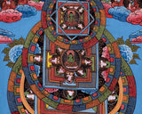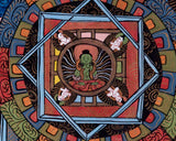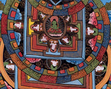 A circular mandala thangka painting is a lovely piece of art. A self mandala, or representation of the unconscious, enables one to identify emotional disorders and strive for personality completeness. Mandala is seen as a separate and shielded sanctuary from the impure and ever-changing outer world of samsara. A tranquil and blissful refuge.