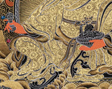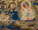This Guru Rinpoche thangka is a powerful symbol of spirituality and cultural richness, enhancing your space with its intricate details and vibrant colors. Whether framed as a focal point or adorned with traditional brocade, it serves as a reminder of Guru Rinpoche's enlightened qualities and teachings, offering inspiration, tranquility, and spiritual depth in your home, office, or sacred space.