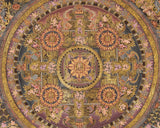 Several concentric rings surround the mandala's central figure, each representing a distinct realm or state of existence, such as the human world, the heavens, or the realms of sorrow. The Buddha is depicted in the center, surrounded by several guardians, bodhisattvas, and celestial deities. These deities, who embody virtues such as protection, knowledge, and compassion, are depicted with rich detail and vibrant colors. The purpose of the mandala is to support meditation and assist practitioners in concentrating on the interdependence of all life and the journey towards enlightenment. The Mandala features wrathful deities, symbolizing the transformative power of Buddha's teachings. These powerful deities symbolize the energy needed to overcome obstacles, ignorance, and negative forces, purifying spiritual growth. Their presence emphasizes the strength and resolve needed to transcend the ego and attain liberation.