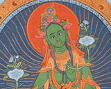 Green Tara Original Hand-Painted Tibetan Thangka: