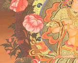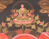 This earthly-toned Vajrasattva Thangka is a breathtaking art. As you can see Vajrasattva seated on the lotus throne at the center. Our thangka is a hand-painted art with magnificent detailing.