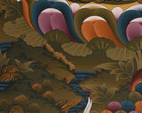 The rich, lush background of this Thangka highlights his relationship to nature and the harmony of compassion and wisdom. It features whirling clouds and blossoming flowers. He is seated on a lotus base, which is symbolic of inner wisdom growing and spiritual awakening. The bright, vibrant hues of Vajrasattva's figure, accentuated with 24K gold, contrast beautifully with the calm, earthy tones of the background. Flowing waters and the gentle, natural surroundings add to the quiet atmosphere, which fosters a sense of serenity and tranquillity. The sacred purity and profound meditation that Vajrasattva represents are captured in this beautifully created artwork, and it produces a potent and serene atmosphere for meditation or spiritual practice.