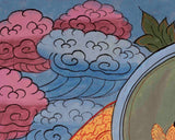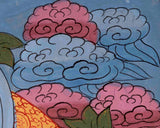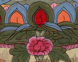 THIS THANGKA IS HAND-PAINTED IN THE TRADITIONAL KARMA GADRI STYLE. THE QUALITY IS HIGH.