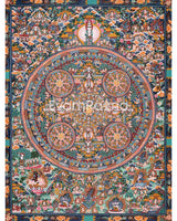 Vintage Buddha Mandala Surrounded by Diverse Deities | Rare Genuine Hand Painted Tibetan thangka |