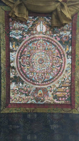 Vintage Heruka Mahakala Mandala Thangka with Brocade | Oil Varnished Thangka