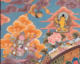This vintage thangka is adorned with intricate details and embellished with gold throughout, exuding a sense of opulence and authenticity. Its use of gold not only adds a touch of luxury but also enhances its spiritual potency, making it a prized possession for meditation rooms and living spaces alike.