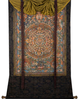 Vintage Mandala Thangka Painting | Tibetan Style Heavy Silk brocade with veil and Windties