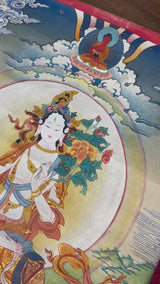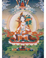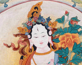 Vintage White Tara Thangka Art | Original Hand Painted Tibetan Buddhist Painting | Meditation And Yoga |