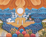 In Buddhist tradition, Namgyalma is a deity that represents longevity and purification. Her image is given life by the careful application of acrylic colors, which provide brightness and clarity. This thangka's use of 24K gold, which symbolizes purity and sacredness, enhances Namgyalma's symbolic meaning. An exquisite work of spiritual art is produced by combining traditional thangka painting techniques with the right materials.