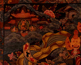 -Rotate thangkas between display and storage on a regular basis, two to four times a year, to reduce the amount of exposure to light. Keep away from sunlight and humidity.