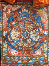 Original Hand-Painted Wheel of Life Thangka With Brocade | Samsara
