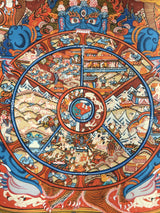 Original Hand-Painted Wheel of Life Thangka With Brocade: