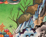 -Rotate thangkas between display and storage on a regular basis, two to four times a year, to reduce the amount of exposure to light. Keep away from sunlight and humidity.