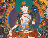 White Tara Thangka | Handpainted Female Bodhisattva | Wall Decors
