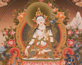 White Tara Thangka | Tibetan Dolkar Bodhisattva Of Long Life | Religious Wall Decoration