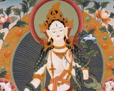 White Tara Thangka Painting | Female Bodhisattva | Decorative Art