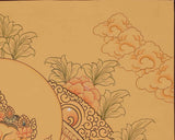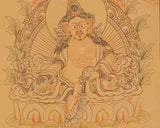 This yellow Dzambala thangka can be displayed for meditation, home decor, or in an office to promote prosperity. It symbolizes generosity and contentment, a trait sought after in life. Whether gifted to loved ones or cherished for personal reflection, it embodies the wisdom and blessings of the Tibetan Buddhist tradition.