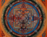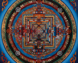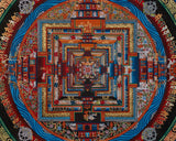 Our hand-painted 16-inch Kalachakra Mandala is a Tibetan artwork embodying the Kalachakra teachings, also known as the "Wheel of Time." It illustrates the universe's interconnectedness, including time and the cosmos, acting as a significant aid for spiritual growth and transformation. This sacred mandala supports individuals on their path to enlightenment, providing protection and enhancing their understanding of life's cyclical nature.