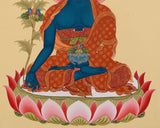 Blue Healing Buddha Thangka | Sacred Medicine Buddha for Spiritual Well-being