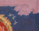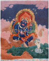 A fierce and powerful representation of Chaturbhuja Mahakala, the wrathful protector deity of Tantric Buddhism. The artwork showcases the deity’s blue form, embodying his dynamic and protective nature. Created by Sugat Shakya, a talented artist based in Lalitpur, this artwork blends ancient Newari and Chinese artistic styles, resulting in a contemporary yet deeply spiritual piece. Sugat Shakya’s journey into religious art began in his childhood, where he was inspired by religious and mythological stories. His early immersion in arts and crafts, especially with religious objects like sculptures and mandalas, naturally led him to pursue a career in this field. In 2023, he graduated from the Central Academy of Fine Arts in Beijing, honing his skills and gaining mastery in traditional techniques. His training has enabled him to create this unique fusion of Newari and Chinese styles, blending them seamlessly into one cohesive and powerful thangka.