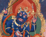 Buddhist Deity of Wisdom, Chaturbhuja Mahakala Painting | Spiritual Masterpiece with Gold and Copper Leaf Detailing