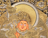 Exquisite Vaishravana, Guardian of the North Thangka | 24K Gold Embellished Art on Black Canvas