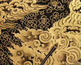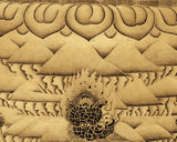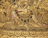 24K gold on black canvas captures the intensity and protection embodied by Mahakala. The gold detailing creates a dynamic contrast against the dark background, highlighting the deity’s fierce energy and otherworldly power. The intricate artistry and spiritual symbolism make this thangka a unique and sacred representation, ideal for anyone seeking spiritual protection or a distinctive and powerful Buddhist artwork.