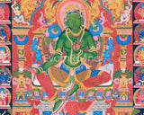 Green Tara and Divine Deities Thangka | Religious Hand Painted Art | Spiritual Decors