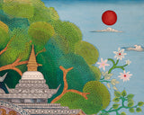 Hand-painted on cotton canvas, a durable and traditional medium that guarantees the artwork's longevity. Acrylic colors add richness and depth to the painting, while genuine 24K gold accents give it a brilliant, celestial aspect. From the elaborate throne to the deity's adornment, the gold detailing captures the sublime grandeur and purity of White Tara. Because of the artist's commitment and use of traditional methods, this piece of art will always be valued.