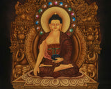Peaceful Shakyamuni Buddha Thangka | Tibetan Buddha Thangka with 24K Gold