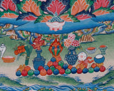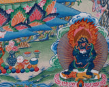 The Samputra Tantra is a pivotal text in Vajrayana Buddhism, and this thangka brings its core themes of spiritual purification and transformation to life. The powerful Buddhist Master, Chitipati, and Black Dzambhala surround the figure. Chitipati symbolizes the transcendence of life and death, and Black Dzambhala represents the spiritual abundance that comes from embracing the Samputra Tantra path. Every figure and symbol in this thangka, from the deities to the celestial beings, is meticulously painted to convey the essence of spiritual purification, prosperity, and impermanence. It is not only a beautiful work of art but also a powerful tool for meditation, reflection, and connecting with the transformative energies of the Tantric Buddhist path.