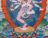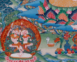 Hand-painted in the traditional Nepali style, this stunning Samputra Tantra (Vajrasattva) Thangka is a breathtaking display of Buddhist symbolism and sacred art. The masterpiece is created with exceptional detail and reverence, featuring vibrant acrylic paints on high-quality cotton canvas. 24K gold highlights the divine figures' celestial and enlightened nature, adding to their radiance.