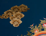 Created by talented Tibetan artisans through traditional methods, this thangka depicts Shyamatara (Green Tara) with intricate details and rich symbolism. The deity’s right hand, raised in a gesture of protection, and her left hand, holding a lotus blossom, symbolize her compassion and purity. Encircled by vivid floral patterns and golden accents, the thangka emanates tranquility and spiritual solace. The incorporation of authentic 24K gold elevates its sophistication, emphasizing both its luxury and spiritual significance.