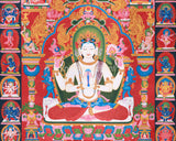 Tibetan Avalokitesvara, Chenrezig Thangka | Enlightened Bodhisattva | Paubha Art