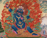 Tibetan Wrathful Deity Vajrapani | Brocade Mounted Fierce Protector Artwork