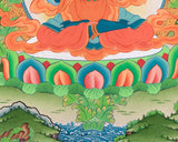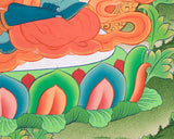 The Vajradhara with Union Thangka encapsulates a profound representation of spiritual harmony and cosmic unity. In this sacred artwork, Vajradhara, the primordial Buddha, is depicted in union with his consort, symbolizing the inseparable union of wisdom and compassion, masculine and feminine energies. Their embrace embodies the essence of enlightenment, where dualities dissolve into oneness. The intricate details of the Thangka portray the dynamic interplay of forces, illustrating the cosmic dance of creation and dissolution. As viewers gaze upon the Vajradhara with Union Thangka, they are invited to contemplate the inherent unity within themselves and the universe. This divine artwork serves as a powerful tool for meditation and spiritual practice, guiding practitioners towards a deeper understanding of the interconnectedness of all things and the realization of ultimate truth.